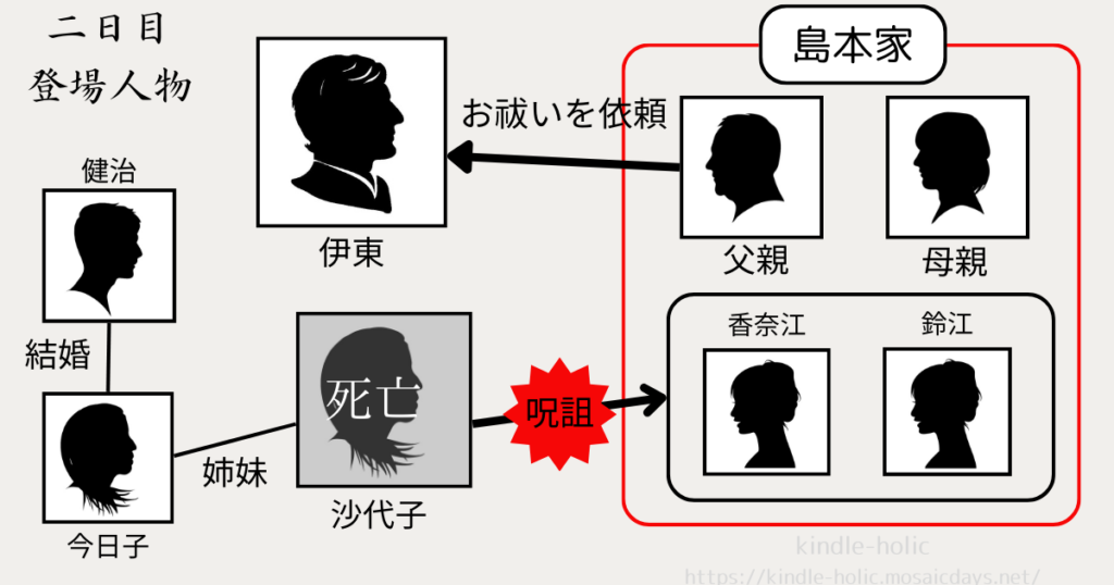 しかしその時にはもう、沙代子の呪詛が島本家に忍び寄ってました。